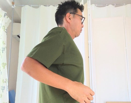肩を前から後ろに回します