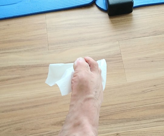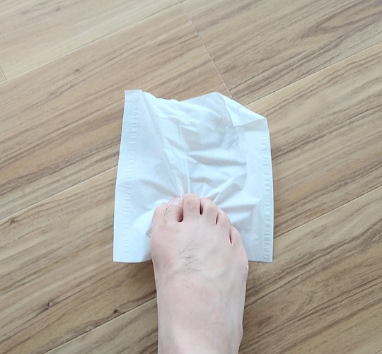 次に足の指でティッシュを引き寄せます。