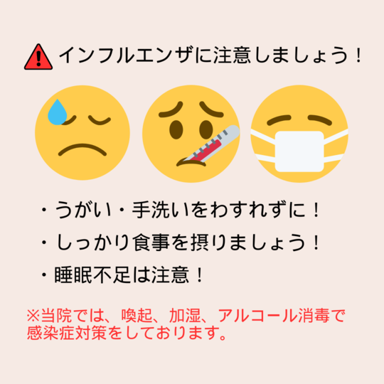これらの日常的な予防法を取り入れ、冬の季節を健康に乗り切りましょう!万が一体調を崩した場合は、早めの受診を心がけてください。